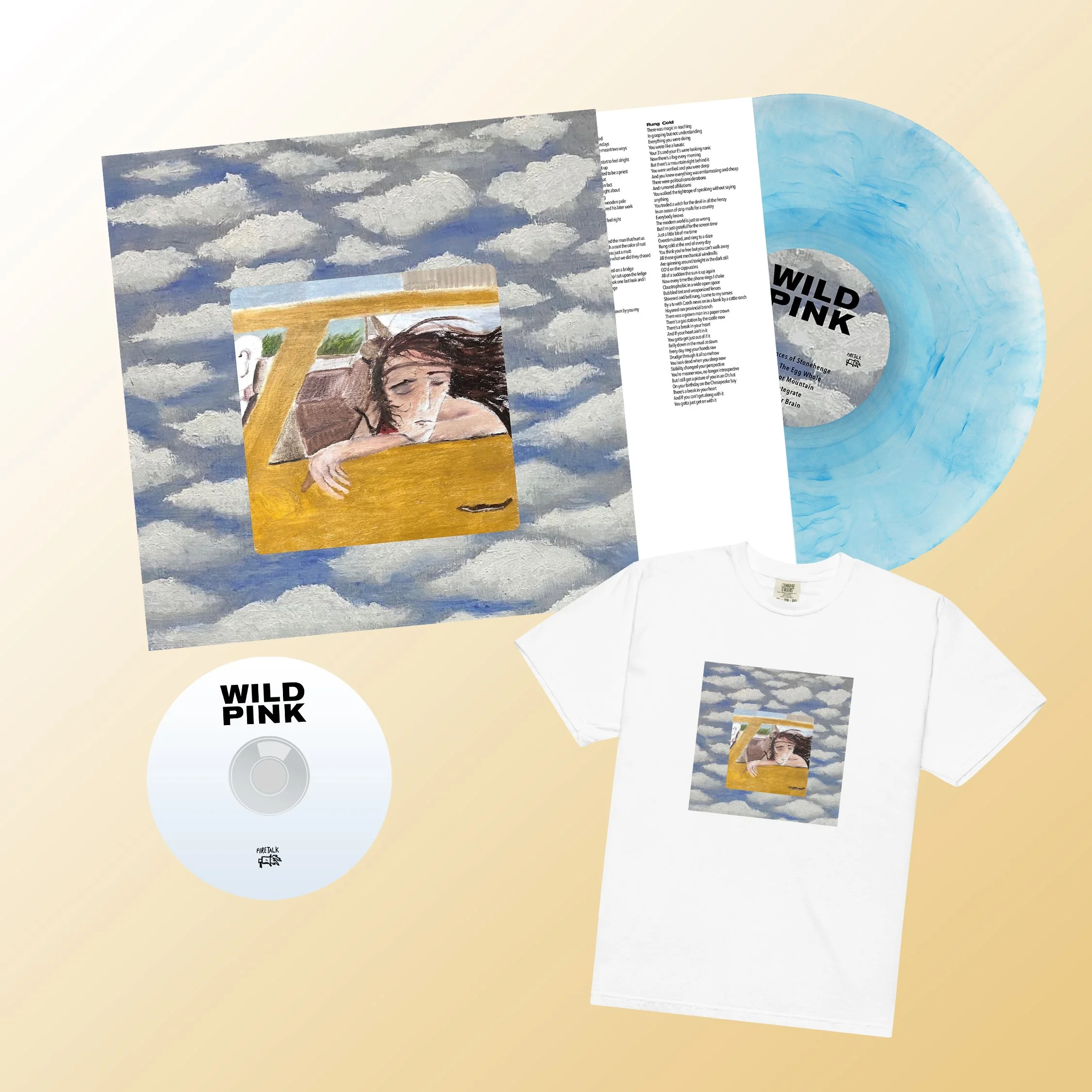 “Do you still believe it?” John Ross asks that question after journeying through the wreckage. The genesis of Dulling The Horns goes back to late 2022, when Ross began workshopping new material during soundcheck on the ILYSM tour. Last summer, Wild Pink decamped to western Massachusetts to reunite with engineer Justin Pizzoferrato. Ross decided to record Dulling The Horns live in the room, in an effort to capture Wild Pink’s onstage style — rawer, grainier. Gone are the glimmering atmospherics and studio affectations of recent Wild Pink outings. Instead, Ross’ voice is haggard against the humid distortion coating every song. “I wanted to make economical songs,” Ross explains. “Music that is very much at its core three or four people rocking.” If before, Wild Pink took notes from Springsteen and Petty, they’ve now entered their Crazy Horse era. On Dulling The Horns, you can hear him rediscovering the fire in real time. Tropes discarded along the roadside, songs pulled from the formative DNA of rock music, all filtered through years of messy fog. “There is no answer to these problems,” Ross says, having eventually yielded. But as far Dulling The Horns is concerned, there’s at least one path forward: Burn it all away, and keep moving. The album was mixed by Alex Farrar in Asheville NC, mastered by Greg Obis in Chicago, IL and is out in October on Fire Talk.